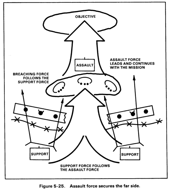 (c) Assault force. The mission of the assault force is to attack through the breach and destroy the enemy protecting the obstacle (see Figure 5-24).