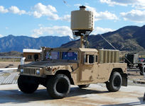 At 500 pounds and 3.6 feet in diameter, the AN/TPQ-50 is designed to be mobile, lightweight and rapidly deployable in support of early entry operations; it can be powered up by a 5-kilowatt generator or draw power from a Humvee. The cylinder-like radar structure electronically steers electromagnetic pulses across a 360-degree protective envelope.