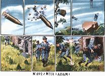 ADAM is an antipersonnel mine activated by deployed trip lines. There are 36 wedge-shaped mines contained in the 155-mm projectile. Minefield density can be selectively determined by altering the number of rounds applied. There are currently three densities: low, medium, and high. The mines are expelled from the projectile (approximately 600 meters) over the designated target. Shortly after ground impact, up to seven trip line sensors are released out to a maximum length of 20 feet. The detonators are armed to fiction in the event of any small disturbance. The ADAM mine has lethality out to 15 feet. Self-destruct times are 4 hours for short self-destruct (M731) and 48 hours for long self-destruct (M692).