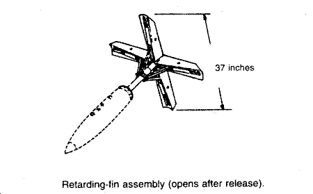 In the retarded mode of delivery, the fins open to retard or slowdown the weapon. Since the aircraft and the weapon are traveling at the same speed when the weapon is released, the weapon and the aircraft arrive at the target at the same time. During low-level bombing, the aircraft could be damaged; therefore, the retarded mode of delivery is used during low-level bombing. The fin assembly is positively armed in the retarded configuration. In this configuration, the fin release arming wire is looped over a permanent structure on the bomb rack. As the weapon is released from the aircraft, the arming wire is pulled from the fin release band, and the spring-loaded fins pop open. The fins are forced to the full-open position by the air stream, which causes the weapon to rapidly decelerate and allows the releasing aircraft sufficient time to safely clear the target area.