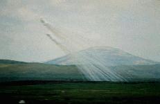- Type of ammunition: First volley, WP and/or HC; subsequent volleys, HC; or all volleys M825 smoke.