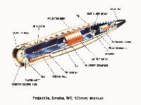 (2) Burster-type white phosphorus. White phosphorus projectiles are available for 105-mm and 155-mm howitzers. They are bursting-tube type projectiles that can be fired with point-detonating (PD) or MTSQ fuzes. The projectile has an incendiary-producing effect and is ballistically similar to the HE projectile. Normally, shell WP is employed for its incendiary effect. The projectile also can be used for screening, spotting, and signaling purposes.