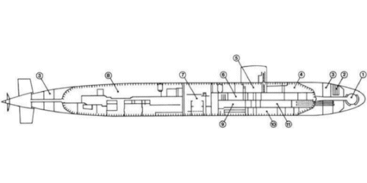 Los Angeles class submarines are divided into two watertight compartments. The forward compartment houses all the living spaces, weapons systems, control centers, and sonar/fire control computers. The after compartment houses the nuclear reactor and the ship's propulsion equipment.
