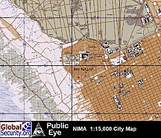 US forces searched Sadr's house in this neighborhood, just east of the old city. (Credit: Space Imaging Eurasia, 08/24/01) |