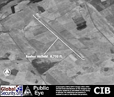 Bashur Airfield is located in Central Iraq approximately 356 kilometers North of Baghdad, 50 kilometers Northeast of Erbil. The airbase is served by a single 6,700 foot long runway. Bashur appears to be a small civilian airport.