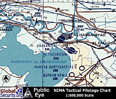 Habbaniyah Airbase is located in Central Iraq approximately 80 kilometers West of Baghdad, Just South of the the town of Al Habbaniyah. The airbase is served by a single 7,800 foot long runway, according to the Gulf War Air Power Survey, there were 8 hardened aircraft shelters, at the base as a of 1991.