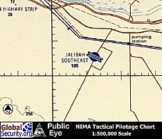 Jalibah Southeast Airbase is located in Southern Iraq approximately 370 kilometers South of Baghdad, and about 65 kilometers South of Al Nasiriyah. It is an unoccupied emergency dispersal/recovery strip. The airbase is served by a main runway measuring 9,800 feet and an alternate runway/taxiway measuring 8,500 feet. Jalibah occupies a 21 square kilometer site and is protected by a 19 kilometers security perimeter.According to the "Gulf War Air Power Survey", there were 24 hardened aircraft shelters at Jalibah Southeast as of 1991. At the each end of the main runway are hardened aircraft shelters knowns as "trapezoids" or "Yugos" which were build by Yugoslavian contractors some time prior to 1985.