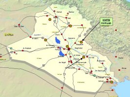 The main road to KirKush is not paved and has no markings to indicate a highway number or route number. Actually, it is probably not the main road as the convoys take various routes to confuse the enemy. About a kilometer outside of KirKush is a cement factory. The cement factory near KirKush has several smoke stacks that are black and about 50 feet high.