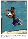 In September 2003 soldiers with the 101st Airborne Division (Air Assault) and the 431st Civil Affairs Battalion gave a group of Iraqi orphans a day filled with fun and games at the Civil Military Operations Center in Mosul. The purpose of the event was for the kids to be able to have fun in a safe environment and spend quality time with the soldiers. Soldiers volunteered time and services to help set-up and run different events of the day. Some soldiers also served as lifeguards at the pool. Children from three separate orphanages arrived to participate in the events. Each group was greeted upon arrival and given a gift of a towel with the Screaming Eagle insignia on it. The children then went swimming in the pool, participated in relay races and played games such as pin the tail on the donkey. Winners of the games got candy and snacks.
