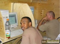 By November 2003 soldiers had finished safeguarding the living area against terrorist attacks and, ironically, hadn't had one since the day they filled the last bundle of sandbags. "Seitz Barber Shop" opened, and some of soldiers can continue a weekly tradition of getting a haircut on a Saturday morning. They found some great barbers from the 53rd Quartermaster Company that volunteer their personal time to cut the countless heads that desperately need trimming. "Dinar General," the shoppette, was almost done with the remodeling, and soon would have actual aisles to stroll down while looking for junk food and DVDs. The base MWR has four additional new computers up and running, and now there is no excuse to not email Mom, buy the family gifts, and remember to send flowers on our anniversary; all of which can be done conveniently at the MWR facility. The Chapel's been strategically moved right across from 24th Trans' barracks, along with the newly constructed 'Meditation Garden," complete with chirping birds.