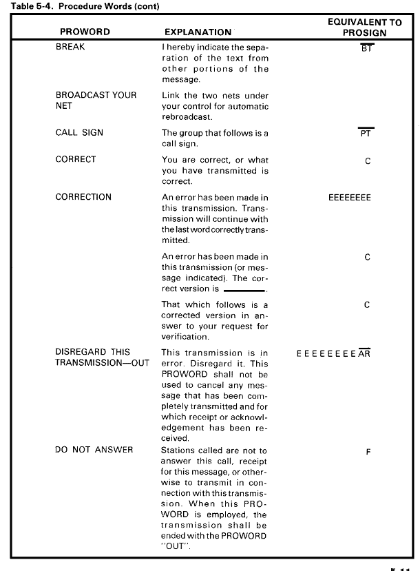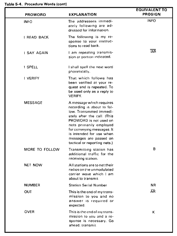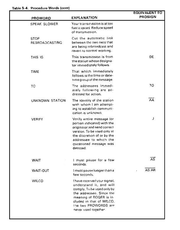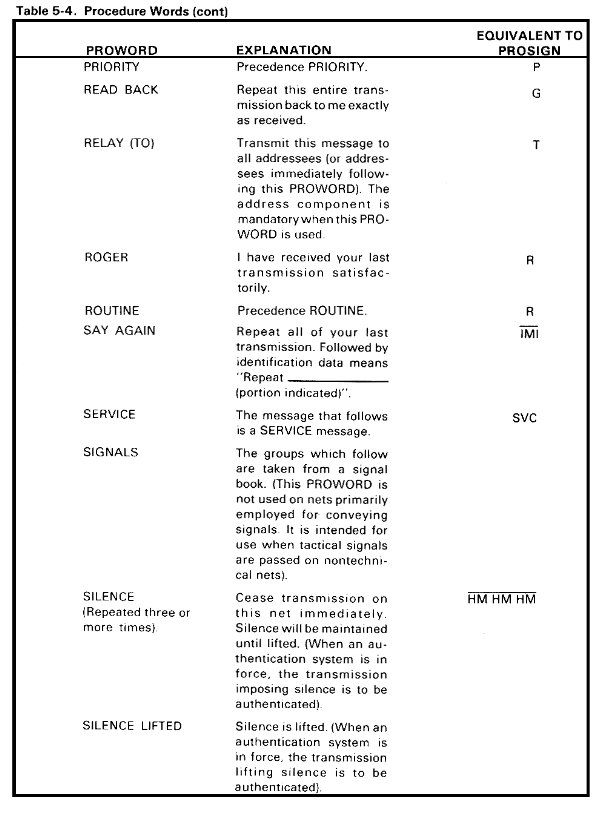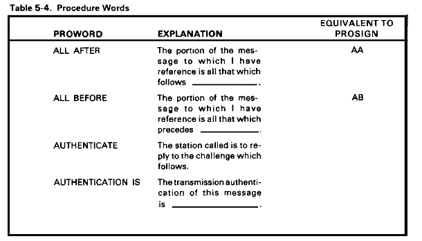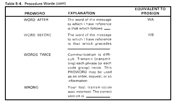 Table 5-4. Procedure Words