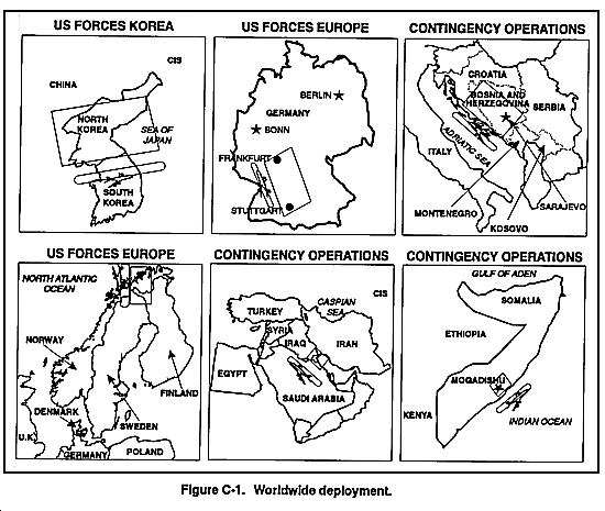 Upon Joint Chiefs of Staff (JCS) notification, the Joint STARS can support contingency operations worldwide. Figure C-1 shows examples of worldwide deployment. This support includes--