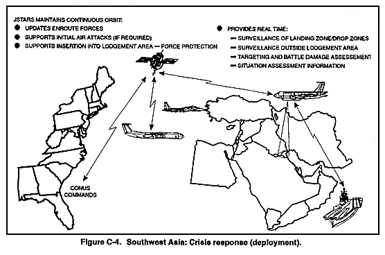 Joint STARS has deployed in support of the US military to Southwest Asia, as shown in Figure C-3.