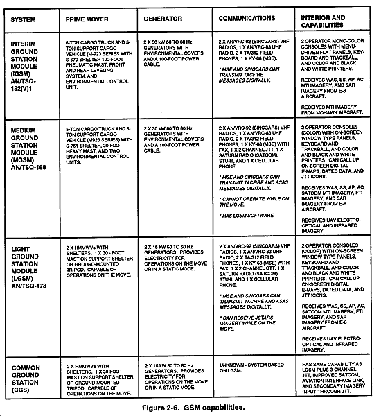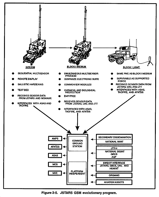 The GSMs have evolved through several product models. (See Figures 2-5 and 2-6 for an overview of Joint STARS GSM evolution and capabilities.)
