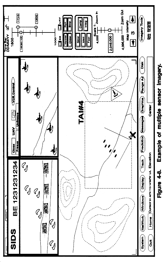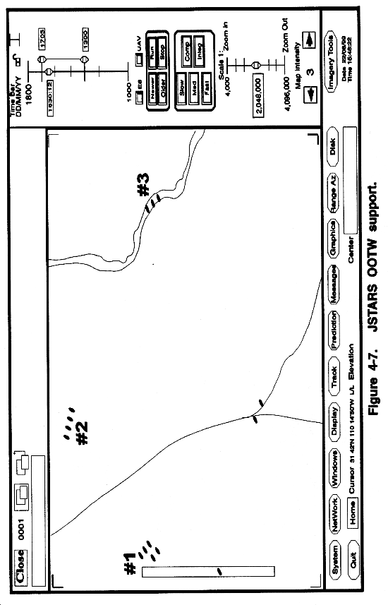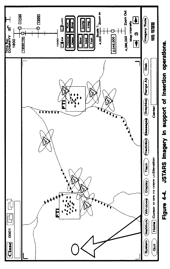 Secondary Imagery Interface. Secondary imagery, Joint STARS imagery, UAV imagery, and JTT SIGINT data used simultaneously are examples of change detection of an area. Figure 4-8 shows multiple sensor imagery with JTT SIGINT data in change detection operations. Other uses of secondary imagery include obstacle and fortification detection and in-depth analysis of an area and targeting operations.