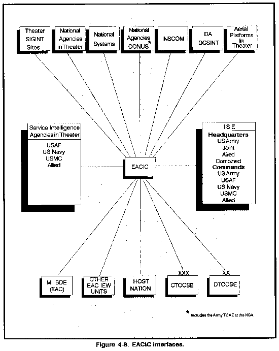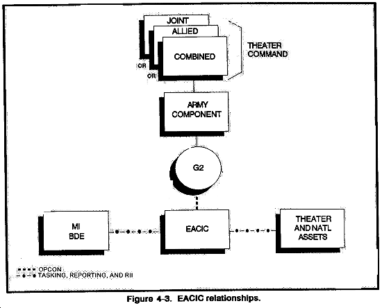 The intelligence staff must be an integral part of the commander's campaign planning process and be constantly attuned to changes in that process. Figure 4-3 shows the relationship between the EACIC and supported commands.