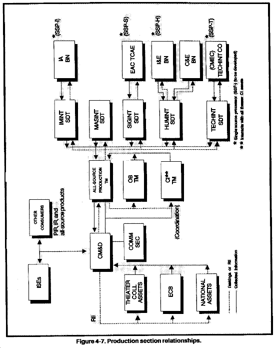 Internal operational procedures and the intelligence cycle dictate close, continuous relationships among all production section teams. Figure 4-7 shows these relationships. The CM&D section fills gaps in information by formulating tasks and levying requirements to assets deployed within the theater and by tasking national assets.