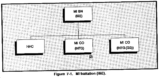 As covered in Chapter 6, the MI battalion (C&E) performs both foreign positive HUMINT and CI activities. In other theaters, these missions are performed by two other battalions. This chapter discusses the MI battalion (I&E) whose mission is entirely foreign positive HUMINT.