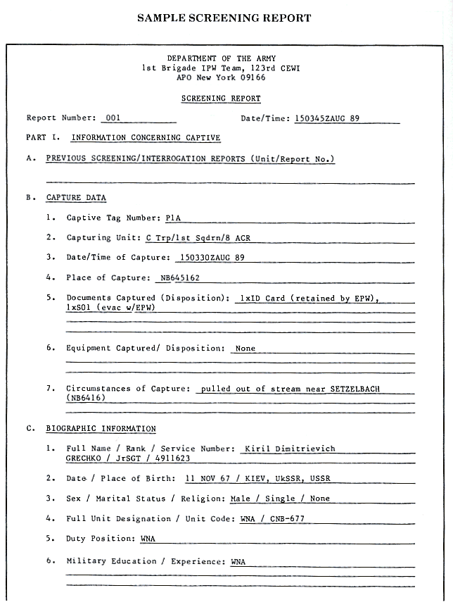Sample Screening Report Format and Report