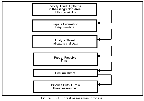 (3) Summarize the analysis in a two-part format. The first part is a short summary of the applied countermeasures, current intelligence reports, and an assessment of the areas of threat change due to countermeasures implementation. The second part includes the detailed estimate of changes presented in Figures B-V-5 and B-V-7.