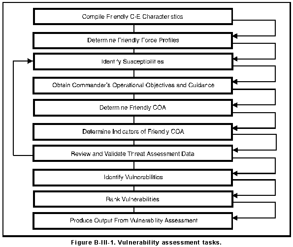 (c) Next, review the current intelligence to determine whether any information suggests change to other operations. Examples might include increased IMINT, more active HUMINT, sabotage, or other active pursuits. The redirection of threat efforts increases the estimate and confidence in countermeasures effectiveness against their target. (Although the redirection may also mean changed friendly vulnerabilities.) Update Figure B-V-5.
