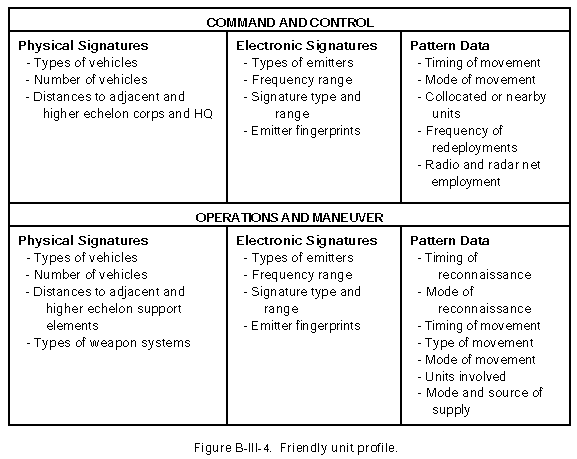 (3) Summarize data. After preliminary reviews, information gaps remaining are filled by other sources. This depends on the applied countermeasures and resources available (sufficient personnel and equipment vital to the determination of C-E profile are not available and require EAC augmentation). Verify the descriptions of the profile by using data from at least two sources.
