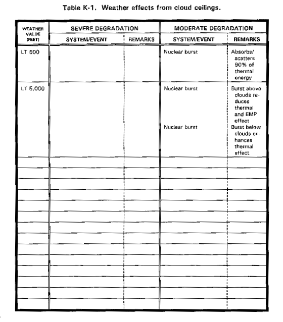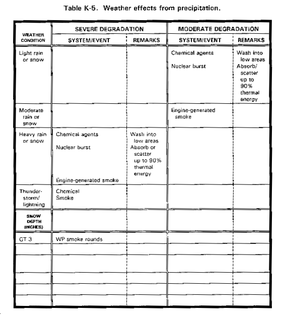 The low-level stability of the atmosphere is an important factor in determining whether there will be a good horizontal transport of radioactive or CB clouds. However, stability is not measured directly but is calculated by considering the above weather elements. The WETM or SWO will assist you in making a stability determination. Listed below are weather effects for NBC operations that are not contained in the WTDA tables.