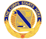 The distinctive unit insignia was approved on 27 Apr 1987. The colors buff and blue have been adapted from the Quartermaster School device and are traditionally associated with the Corps. The parchment alludes to matriculation, achievement and the unit's mission. The diagonal blue bar, book and lamp of knowledge have been adapted from the Quartermaster School device. The crossed sword and key superimposed by a wheel are adapted from the Quartermaster Regimental insignia. The laurel is symbolic of achievement and high ideals: the three cords represent the commendable qualities of courage, skill and strength and reflect the history of the unit. The wheel, with twenty-three spokes exposed, refers to the designation of the unit and its logistics heritage.