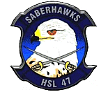 The SABERHAWKS of Helicopter Antisubmarine Squadron Light FOUR SEVEN were officially established on 25 September 1987. The primary mission of HSL 47 is to provide combat ready detachments to Pacific Fleet surface combatants. HSL 47 outfits these detachments with highly qualified, motivated, and skilled aircrew and maintenance personnel, coupled with fully mission capable aircraft maintained in optimum material condition.