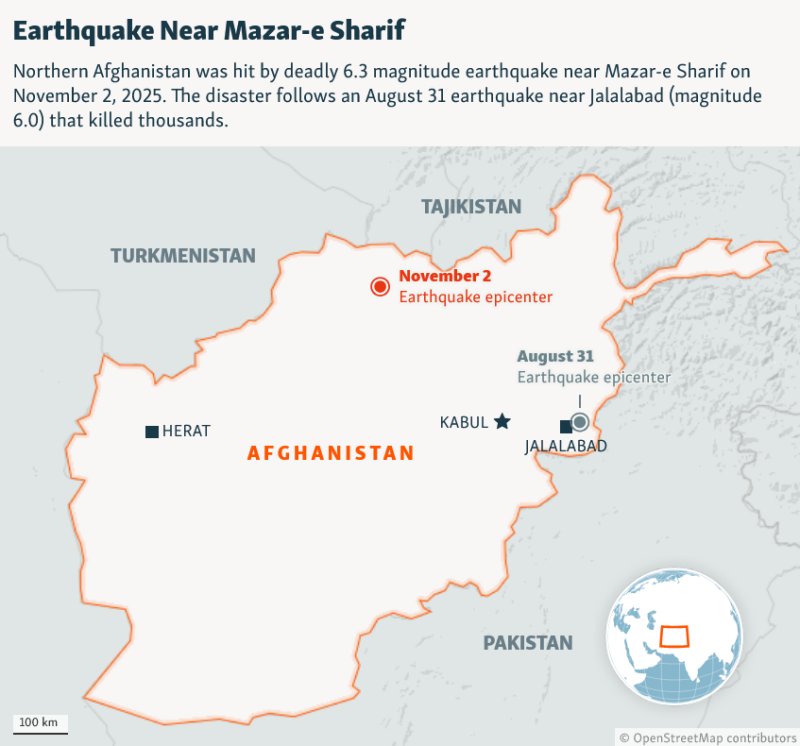 At least 27 people are dead and scores more injured after an earthquake of 6.3 magnitude struck near the northern Afghan city of Mazar-e Sharif early on November 3, just two months after a deadly and devastating quake rocked the eastern part of the country.