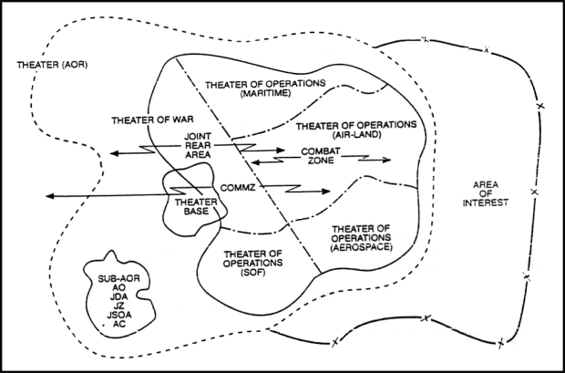 Theater combatant commanders develop strategy and organize the theater. The Army, besides operating as part of a joint force, must be prepared to conduct multinational operations with land, air, and naval forces of other nations, as well as to conduct interagency operations. While unity of command may not be possible in multinational operations, unity of effort is essential. Each CINC may assign associated areas within his theater to subordinate commanders. CINCs may designate joint areas or zones during war and during stability and support operations (SASO), while theaters of war and operations are designated only in time of war. Combat zones (CZs) and communications zones (COMMZs) may be established as needed (see Figure 1-2). The CINC organizes his theater to synchronize unified operations or to integrate single-service, joint, special, and supporting operations with allied and intra-agency activities, nongovernmental organizations, and private volunteer organizations.