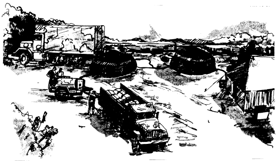 Once the lodgement area is established, expansion of the logistics base begins. Corps units brought into the AO are supplied by nondivisional QM supply companies. As in the lodgement phase, most units will pick up water from the water supply point. Deliveries to major users, such as hospitals, would commence using the 3000-gallon SMFT.