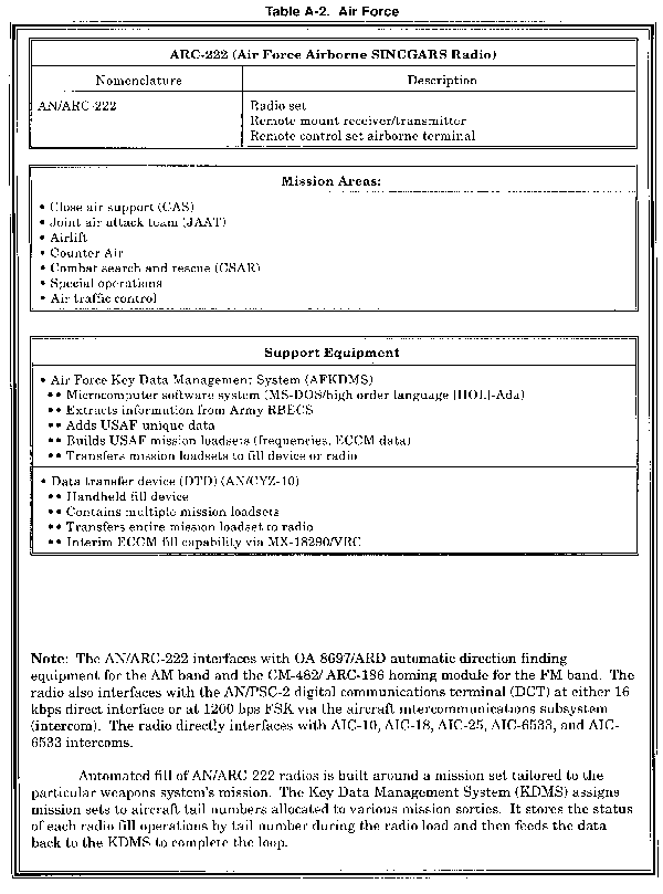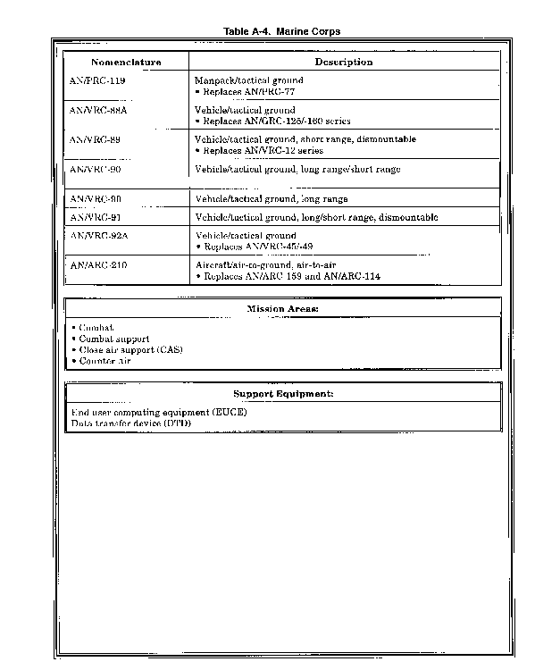 APPENDIX A - SERVICE-UNIQUE SINCGARS CHARACTERISTICS AND SUPPORT EQUIPMENT