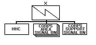 The principal signal support organization at corps is the corps signal brigade. Its mission is to provide support through the corps area common-user network. It also provides special staff and technical assistance for planning and controlling all corps signal functions and the extension of signal services to higher and adjacent commands. Figure 2-1 shows an example of the brigade structure. MSE is the principal corps common-user system which provides connectivity to subordinate divisions, adjacent units, joint and allied services, and the Defense Information Systems Network (DISN).