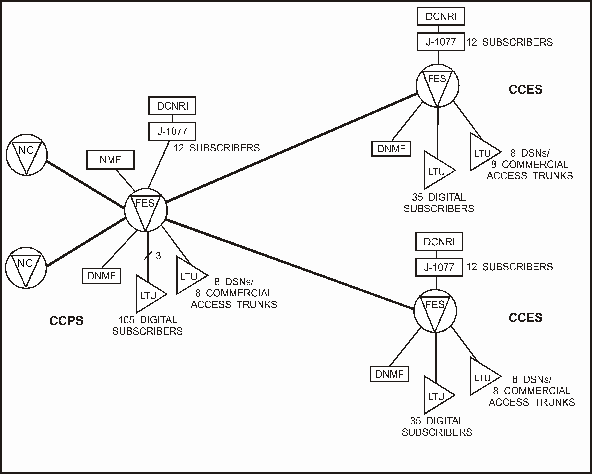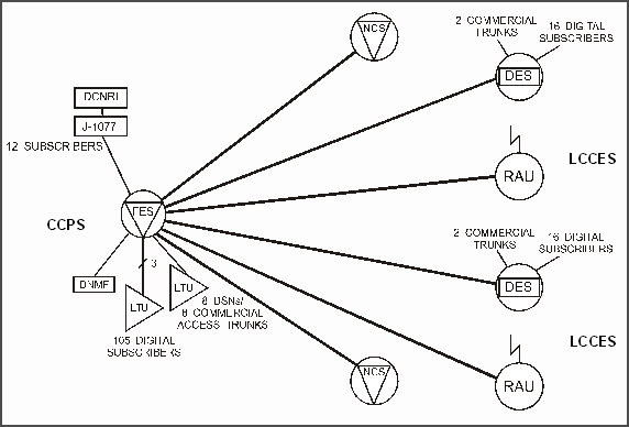 6-12. The CCPs can support local switching, tandem trunking, flood search routing, and database maintenance for extension switches and RAUs. 6-13. At the task force CP/airfield, the CCP can support 12 local RAU subscribers, 117 local wire subscribers, 8 defense switching networks (DSNs) or 8 commercial access trunks, and 7 packet switch hosts. 6-14. At the brigade headquarters, the CCP can support 15 local RAU subscribers, 47 local wire subscribers, 8 DSNs or 8 commercial access trunks, and 7 packet switch hosts. 6-15. The CCP and LCCP are fully interoperable with other MSE systems. Two C-141B aircraft sorties can transport each CCP or LCCP. |