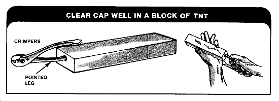 - STEP 1. Clear the cap well of a block of TNT or push a hole about the size of a blasting cap (3 cm [1 1/3 in] deep and .65 cm [1/4 in] in diameter) in a block of C4 explosive.