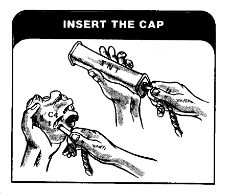 - STEP 7. When using TNT, insert the blasting cap into the cap well. When using C4, place the cap into the hole made in the C4 and mold the C4 around the cap. DO NOT FORCE THE CAP INTO-THE HOLE.