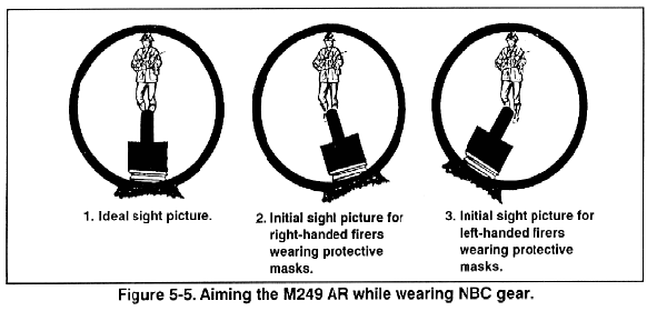 b. Aim. To aim the M249 AR, the automatic rifleman must align the sights, focus his eye, obtain a correct sight picture, control his breathing, and maintain trigger control.