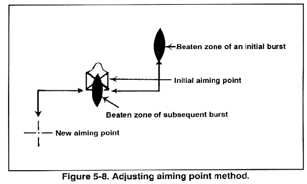 b. Adjustment of Fire. The automatic rifleman must observe the strike of the rounds when the initial burst is fired. If not on target, he manipulates the M249 until the rounds do strike the target. He must be proficient in observing the strike of rounds, in observing and using tracers, and in rapidly laying the M249 AR on the target during firing.
