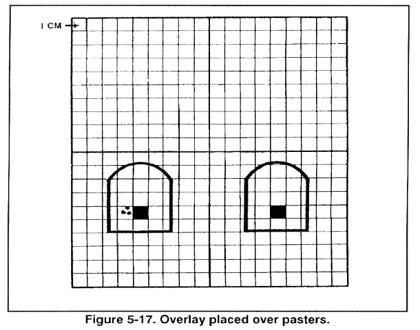 (4) Once the AN/PVS-4 is mounted and boresighted, fire a three-round burst at the center base of the target and note the strike of the rounds. While maintaining the reticle aiming point on the target, move the reticle aiming point to the strike of the rounds by manipulating the elevation and azimuth actuators.