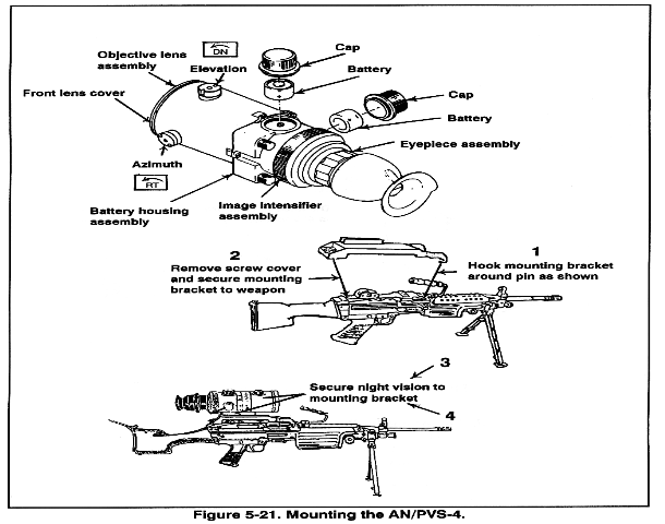 learns how to engage targets using the AN/PVS-4. He learns to mount the