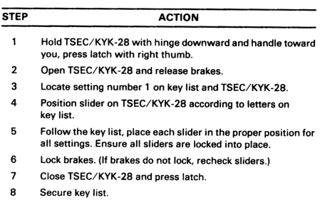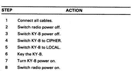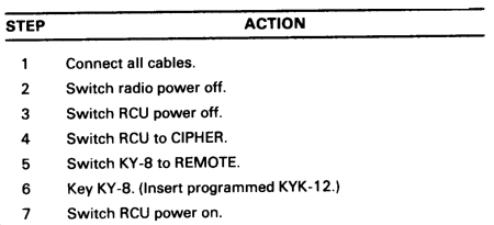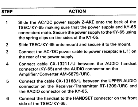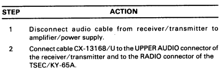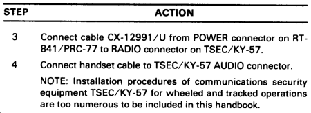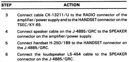 When used with Radio Teletypewriter Sets AN/GRC-122, AN/GRC-142, AN/VSC-2, and AN/VSC-3, the Installation Kit MK-2488/G must first be installed. Interconnecting Box J-4024/U interfaces the KG-84A with Teletypewriter Sets TT-98/FG, TT76/GGC, TT-122/TG, and TT-4/TG. For complete wiring details of the KG-84A in radio teletypewriter sets, see appropriate technical manual. Do not attempt to use the KG-84A without Installation Kit MK-2488/GR.