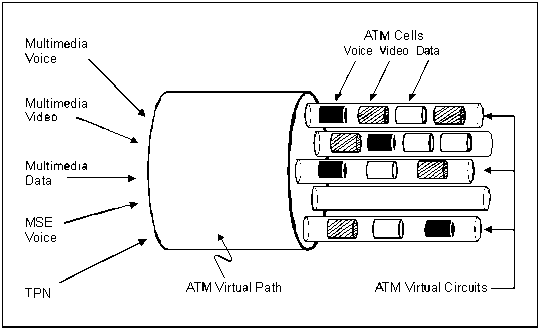 C-42. ATM technology provides a highly efficient communications system for high-speed data switching. This capability transmits voice, video, and data in a single communication link. Figure C-6 shows the basic ATM switch technology. The system can also transmit still photography, images, and graphics.
