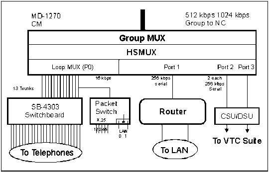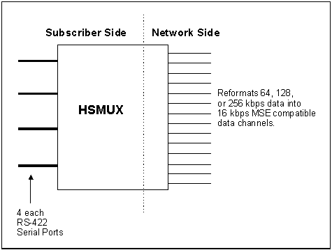 C-44. The HSMUX performs an inverse multiplexer function by taking the aggregate port rate (256 kbps) of each serial data circuit (router) and breaks it into individual 16 or 32 kbps channels on the digital transmission group. Figure C-8 shows the inverse multiplexer.