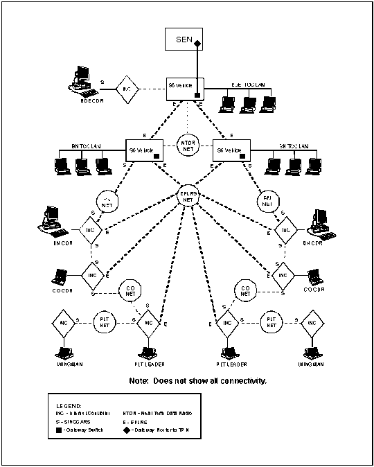 - SunSPARC 20 workstation hosting the network management tool (brigade and below) (NMT(B2)) software.
