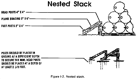 - Build bracings at the ends of the rows to keep the drums from rolling or toppling (figure I-2).