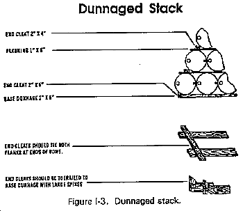 - Attach wooden cleats to the dunnage at the ends of each row (figure I-3).