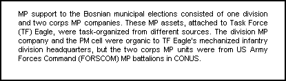 - The specific missions of MP units in the area and the impact that rear-area security operations will have on the ability of these units to perform other functions.