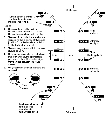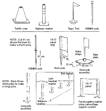 Figure 3-10 shows some of the devices that units currently use; they are easily procured or fabricated. This is by no means a complete listing; rather, it is intended to show commanders some of the options. Some of the general requirements for lane marking are