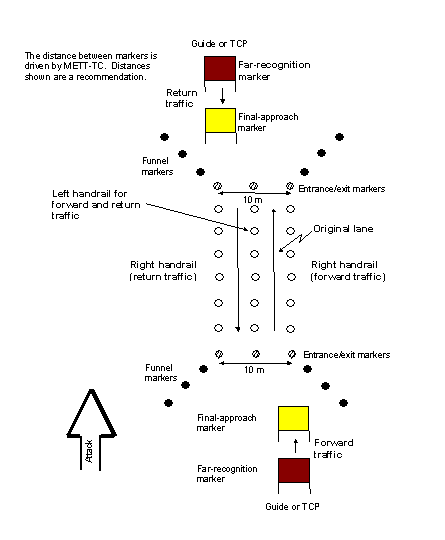 - Lane markers help the force posture its formation for efficient passage through the defile that is caused by the lane through the obstacle.